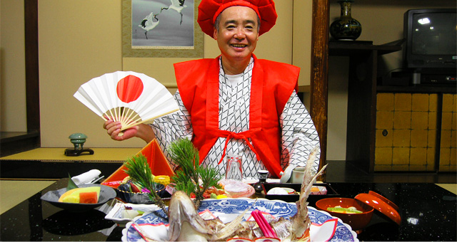 長寿のお祝いにはちゃんちゃんこの無料貸出と写真撮影をサービス致します。ご家族の思い出にぜひご利用ください。